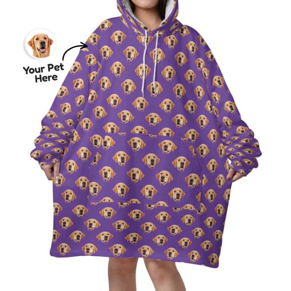 Custom pet hoodie blanket featuring your beloved pet’s photo. Soft sherpa inner lining with front pocket for ultimate comfort. One size fits all.